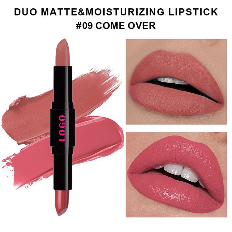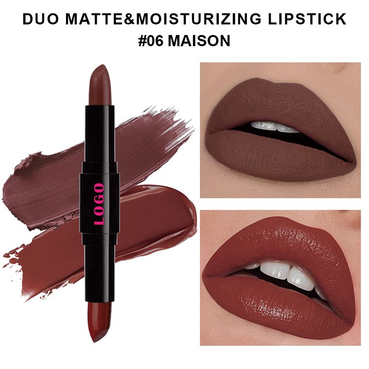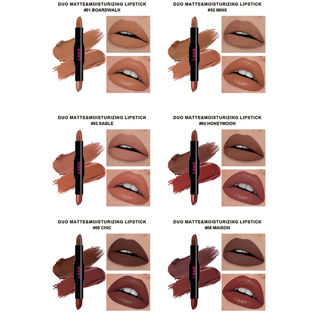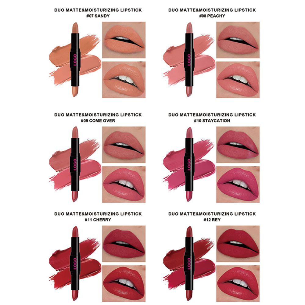 - 12 Farben 2 in 1 doppelköpfiger, antihaftbeschichteter Lippenstift, feuchtigkeitsspendender, lichtechter Lippenstift