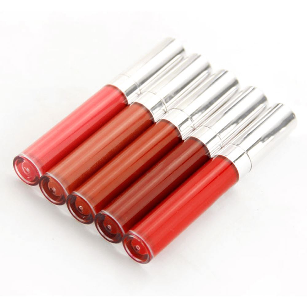 Brillos labiales de tubo redondo con tapa plateada de 5 colores
