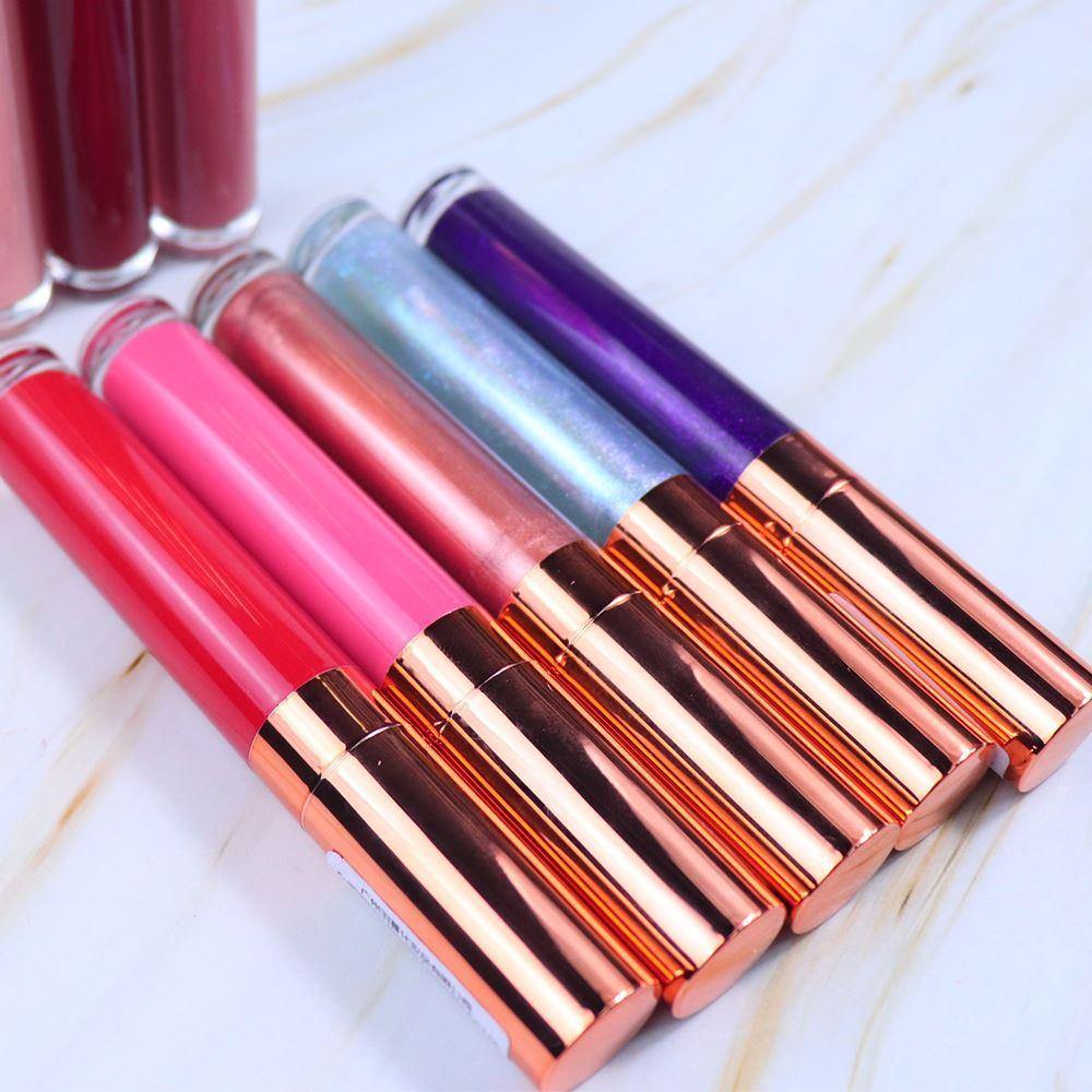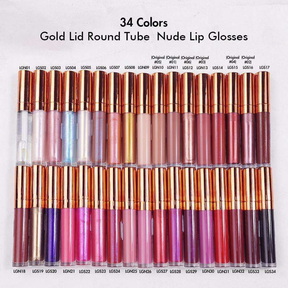34 Couleurs Or Couvercle Tube Rond Brillant À Lèvres Nude【30PCS Livraison Gratuite & Logo D'impression Gratuit】